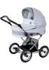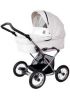 Люлька, прогулочный блок, шасси, дождевик, москитная сетка, солнцезащитный тент, 2 капюшона (для люльки и для сиденья), 2 накидки на ножки (для люльки и для сиденья), сумка для мамы