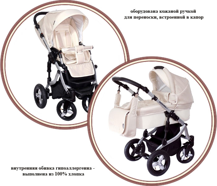 Коляска 2в1 Zekiwa Finesse – универсальная коляска, предназначенная для детей от рождения до достижения ими возраста 3-4 лет, а также отлично подходящая как для летнего, так и для зимнего сезона. Выгодно отличается от аналогов наличием теплой люльки с деревянным дном и больших надувных колес, способных преодолеть любое препятствие. На шасси коляски могут быть установлены автокресла Maxi-Cosi и Cybex (приобретаются отдельно).