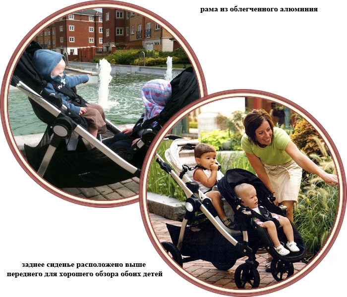 Коляска 2в1 для двойни Baby Jogger City Select - отлично подойдет для двойни или прогодок. Удобные люльки, в которых малышам будет тепло и уютно, получаются из наборов, состоящих из мягких тканей и опорных каркасов. Вы сможете в несколько простых движений превратить сиденье коляски City Select в люльку для младенца. Для этого просто нужно снять ткань с сиденья и вместо нее прикрепить ткань люльки на ту же самую раму. Чтобы вашим малышам было удобно и комфортно оба сиденья прогулочных блоков регулируются по наклону до 170 градусов, независимо друг от друга сиденья можно устанавливать по или против хода движения. Кроме того, заднее сиденье расположено выше переднего, поэтому оба ребенка имеют хороший обзор. Практичная и комфортная, она идеальна для прогулок и путешествий с двойняшками или погодками.