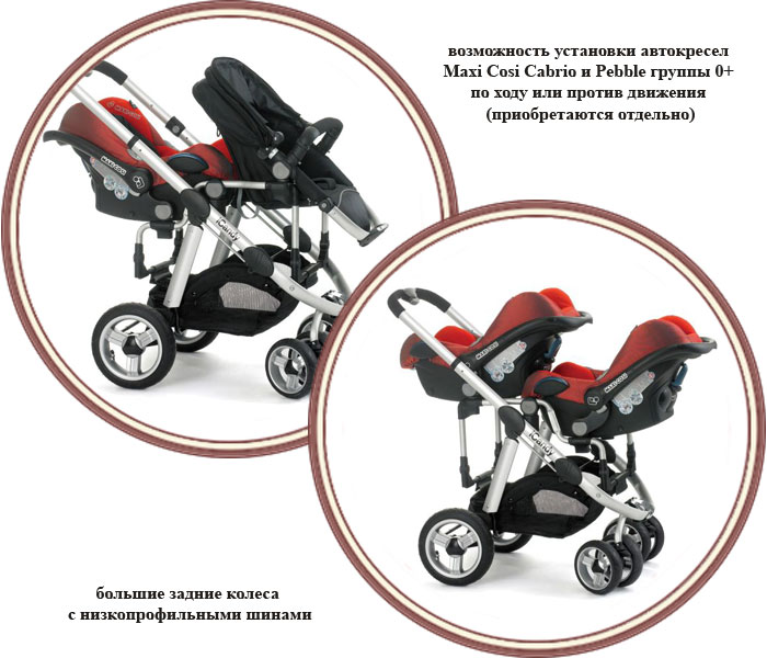 Возможность установки одним движением автокресла Maxi Cosi Cabrio и Pebble группы 0+ (приобретаются отдельно)