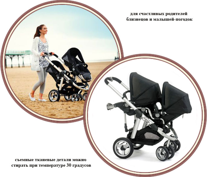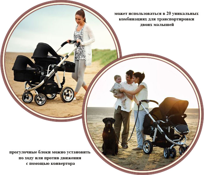 Может складываться до очень компактного размера, легкая алюминиевая рама, делает ее легкой и удобной для транспортирования. Коляска необычайна во всех отношениях. Ее характерный дизайн восхищает с первого взгляда. Ее технологическое превосходство оправдывает себя каждый день снова и снова. Коляска оснащена многими практичными деталями и может использоваться в 20 уникальных комбинациях для транспортировки двоих малышей. С такой коляской вы точно не останетесь незамеченными!