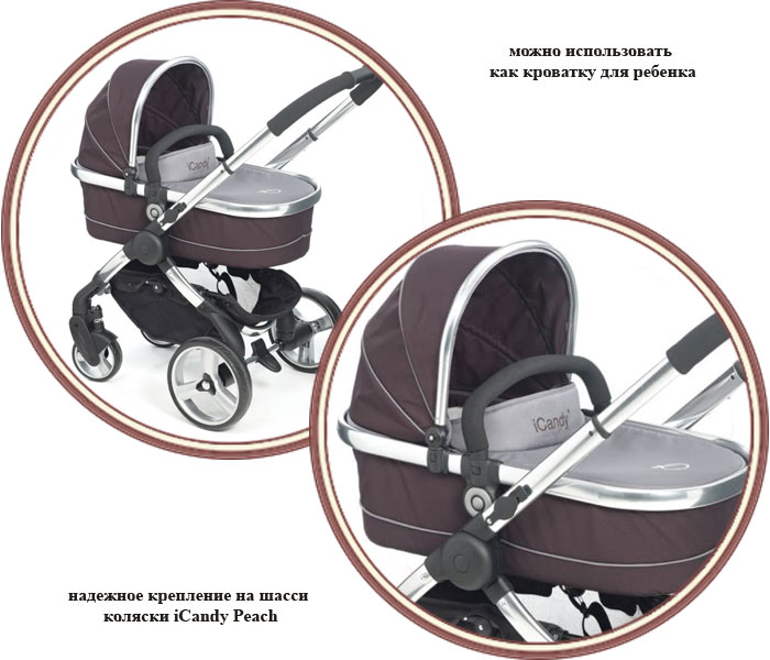 Люлька для новорожденного для коляски iCandy Peach - идеальный аксессуар для младенца в первые месяцы его жизни, в комбинации с люлькой детская коляска iCandy Peach превращается в удобную и компактную прогулочную систему. Люлька имеет жесткий каркас, что обеспечивает максимально комфортную и безопасную позицию тела ребенка. Люлька дает возможность малышу вздремнуть или просто отдохнуть - как дома, так и во время поездки. Благодаря эргономичной ручке люльку можно брать с собой, куда бы вы ни шли!