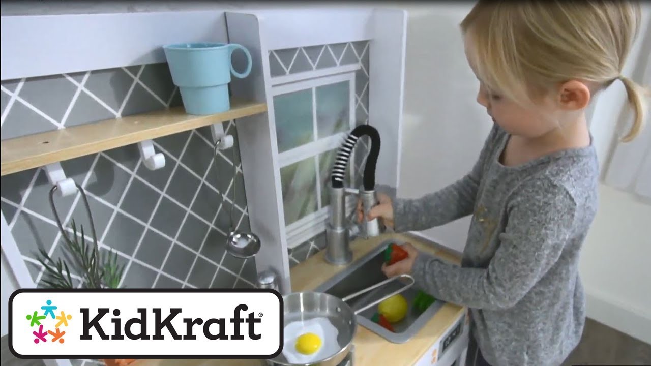 Игровая кухня KidKraft "Давай играть" – стильная, современная, компактная детская кухня, отличный набор для начинающего повара. Расставьте посуду по полочкам, помойте овощи и фрукты. Теперь пора включать плиту. Повернули рычаги, ставим на конфорку кастрюльку. Осталось самое важное – узнать рецепт любимого блюда.