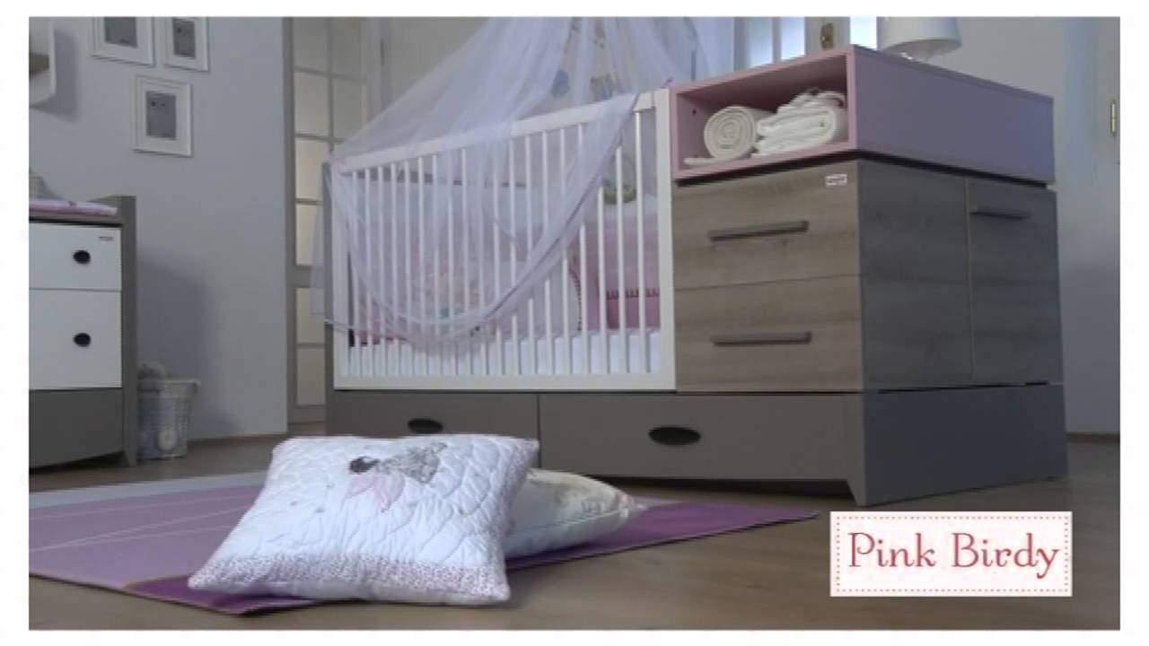 Кроватка-трансформер NewJoy Birdy – это выбор беззаботных мам. Кроватка выполнена в двух цветовых вариантах: голубом и розовом. С учетом того, что ваш ребенок не всегда будет таким же маленьким, как сейчас, шкафы и ящики имеют специальный размер и глубину в соответствии с вашими потребностями. Кроватка растущего ребенка включает шкафчик и ящики для хранения всех необходимых верей, стол для пеленания. Регулировка высоты. Отличительной особенностью мебели является использование в основных каркасных элементах ДСП толщиной до 32 мм, что в свою очередь обеспечивает прочность и солидность. Тумба декорирована шелкографическими изображениями и 3D-керамическими картинами (ноу-хау).