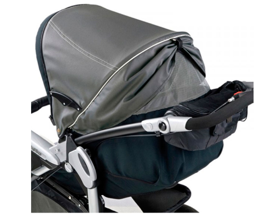 Съемный, регулируемый с москитной сеткой, с окошком для лучшей циркуляции воздуха, а также специальным креплением для любимых игрушек малыша