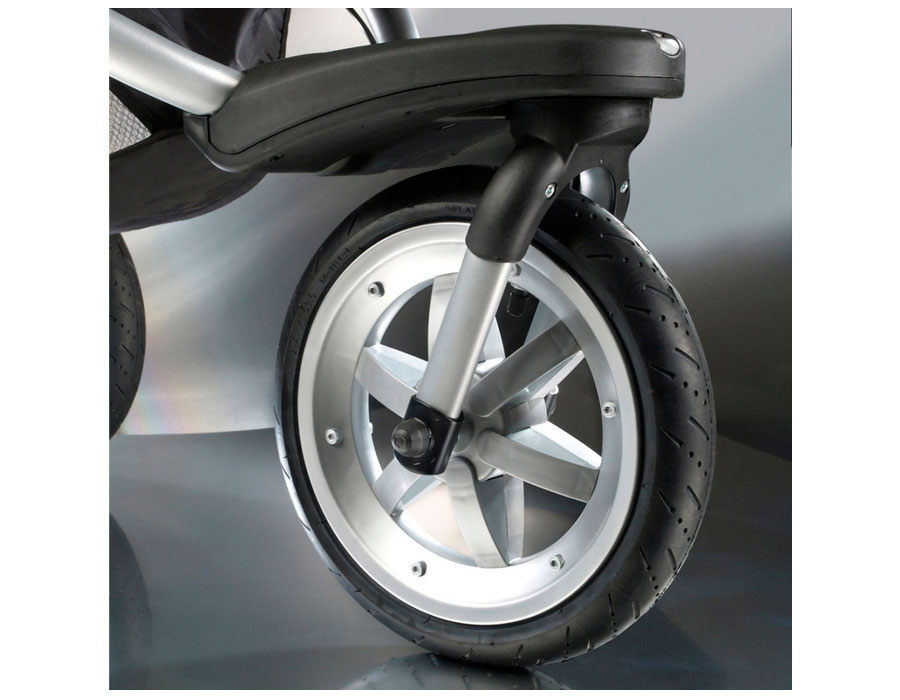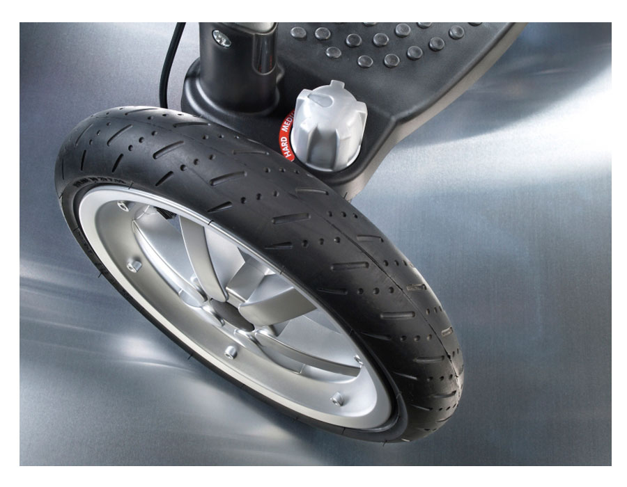 Переднее имеет два положения, в одном из которых может самостоятельно поворачиваться на 360 градусов, а во втором может фиксироваться в прямом положении, камерные шины и шарикоподшипники, подвеска задних имеет 3 положения