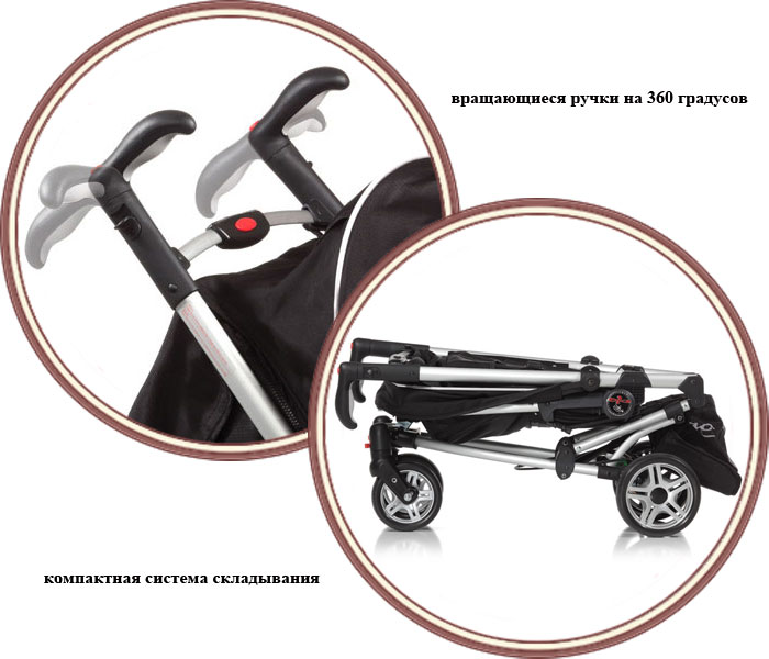Не удобно фиксировать в сложенном состоянии, для этой цели предусмотрен пластмассовый крючок, но, чтобы закрепить им коляску, требуется приложить усилия.